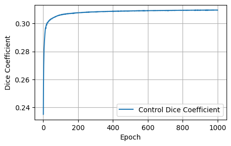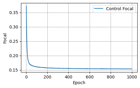 After 1000 epochs, the control model had the following scores: - Loss: 1.8157, Dice: 0.3096, Focal: 0.1537, BCE: 0.6433, Accuracy: 0.9788, F1: 0.9176