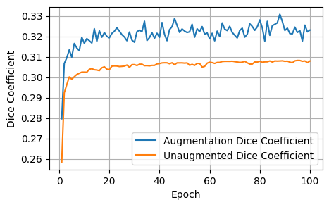plot_metrics(aug_dices, unaug_dices, 'Dice Coefficient')