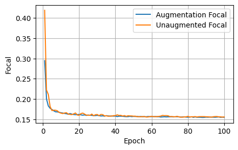 plot_metrics(aug_focals, unaug_focals, 'Focal')